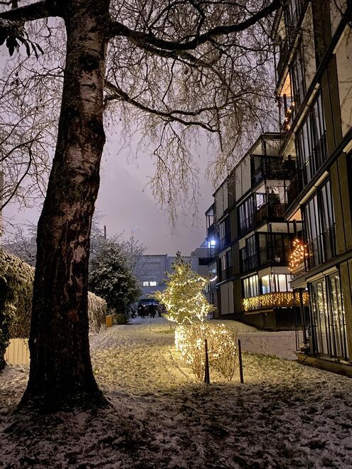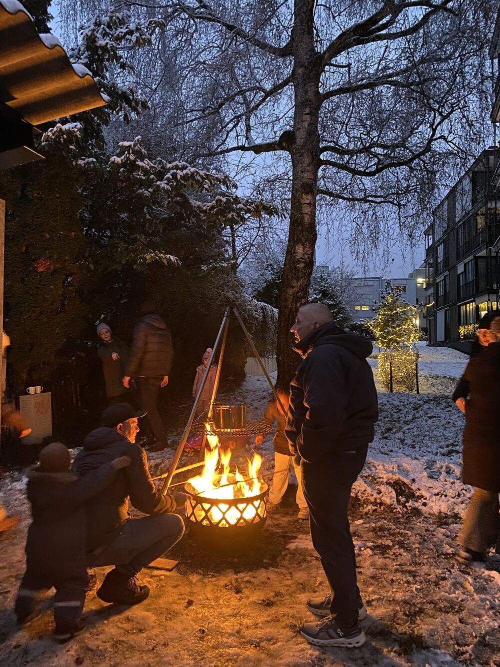 Nach fröhlichem Zusammensein im Schnee zieht es die einen bald zurück in ihre warmen Stuben. Ein harter Kern harrt aus, bis es in der Feuerschale nicht einmal mehr glüht.